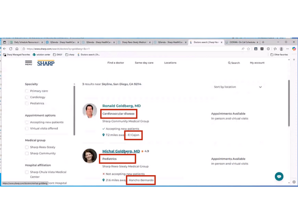 To search for the department and location of a Doctor: